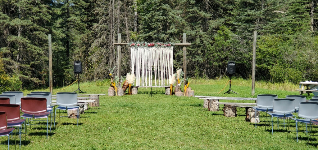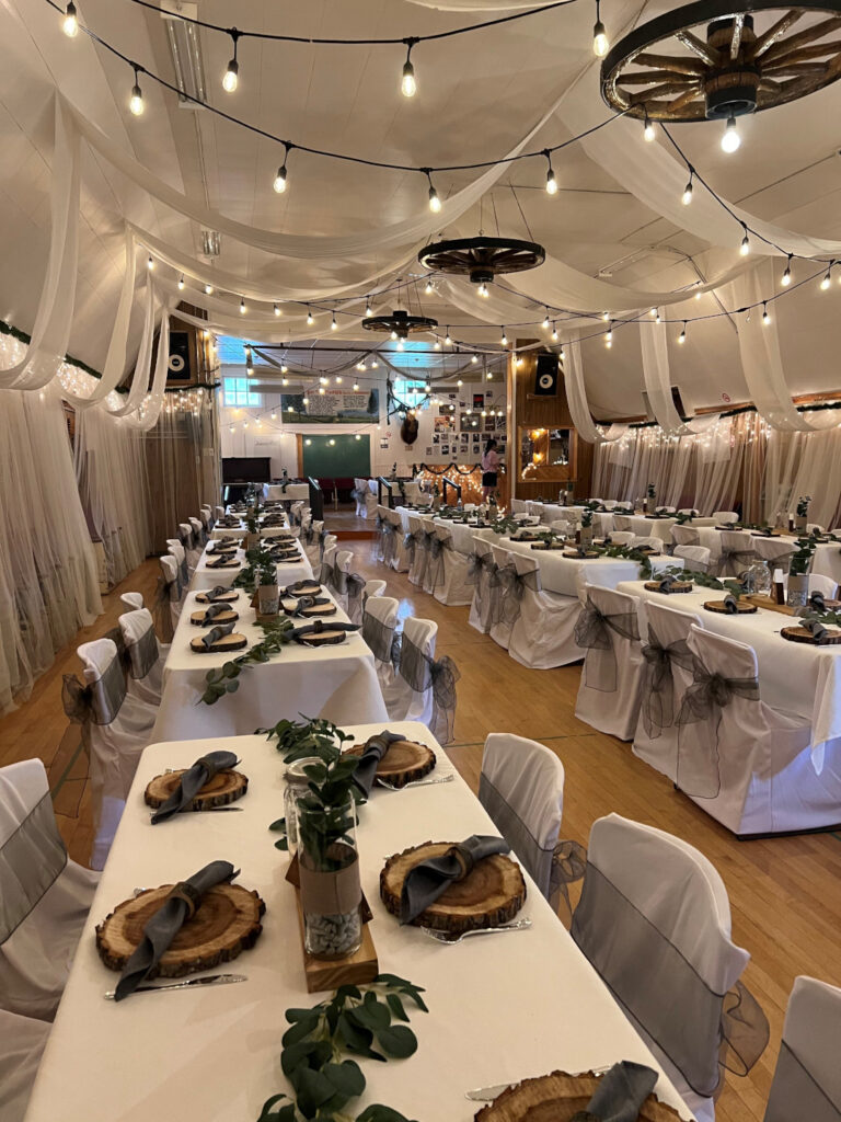Are you looking for a unique place to host your wedding or special event? Our community hall is located in the heart of the west country, nestled in the trees and surrounded by the foothills of the Rocky Mountains. The hall can seat a maximum of 130 people and comes with a fully equipped kitchen. The grounds surrounding the hall are available for hosting your event, or for camping before, during, or after your event. For more information about renting our hall, see our Rentals page.